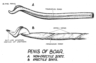 Anyway, so on Monday, we served the sows. Which is more or less pig sex. Now, [WARNING: this next bit is not kid-friendly] boars' penises are shaped like corkscrews, and when they're doing their thing it looks like a power screwdriver.